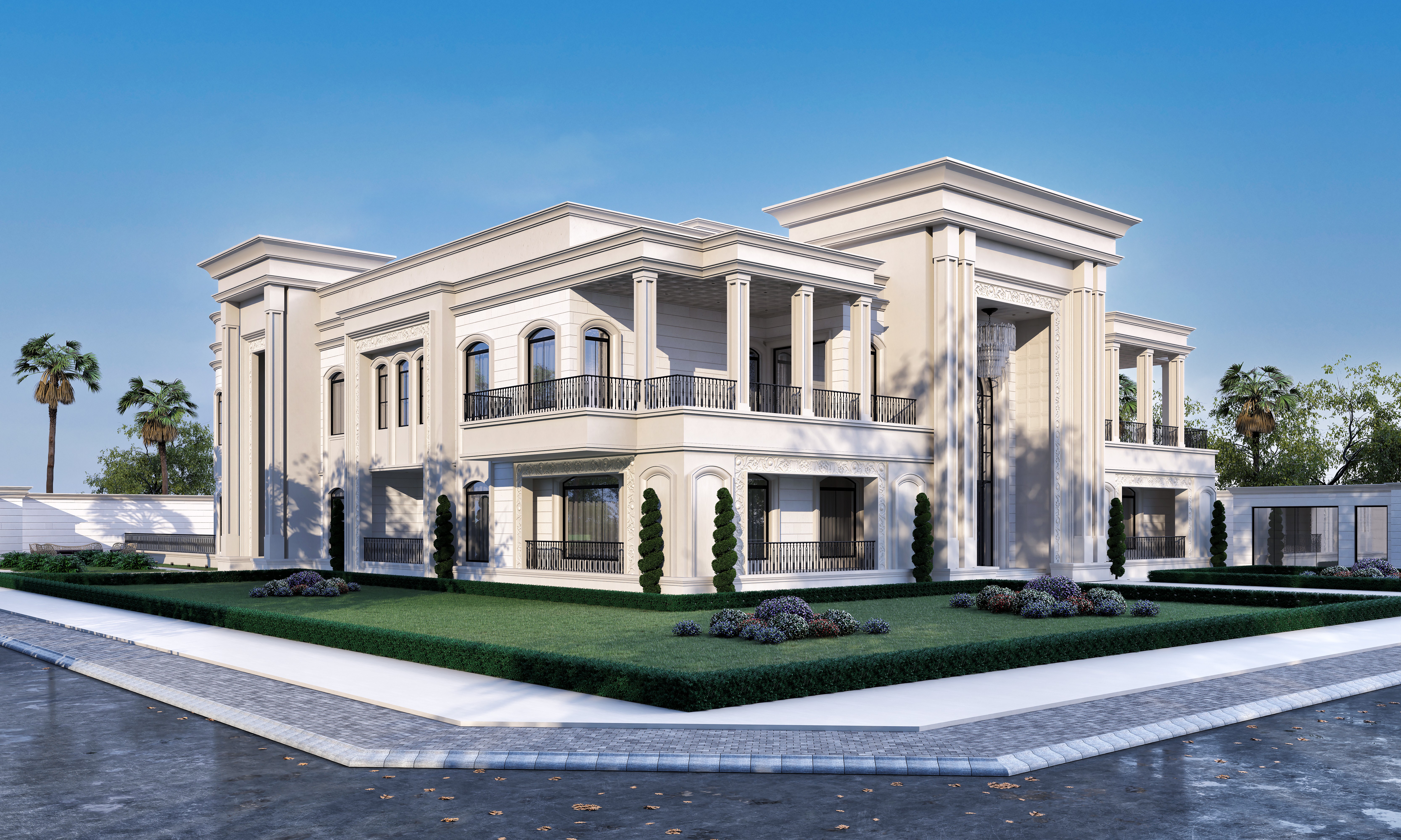 A luxury architectural masterpiece on a 4,000 m² estate. It features a refined classic design with high-quality details in an exceptional location near Riyadh’s top landmarks.